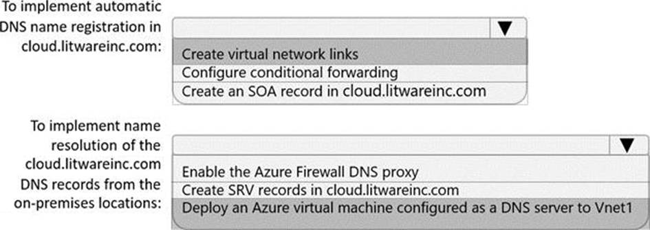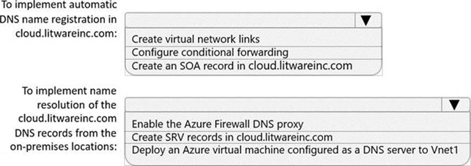 You need to implement name resolution for the cloud.liwareinc.com. The solution must meet the networking requirements.