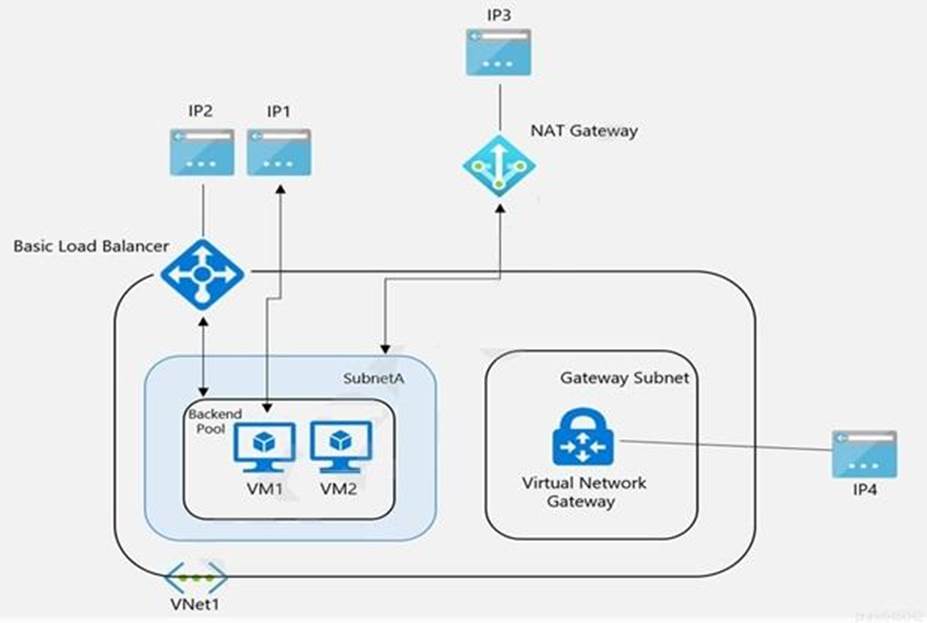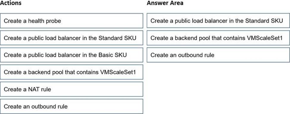 You need to implement outbound connectivity for VMScaleSet1. The solution must meet the virtual networking requirements and the business requirements.