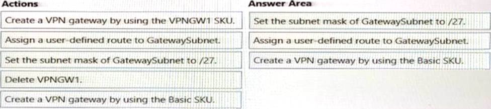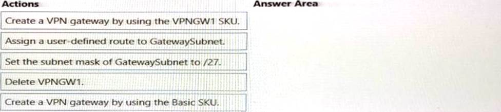 Which three actions should you perform in sequence? To answer, move the appropriate actions from the list of actions to the answer area and arrange them in the correct order.