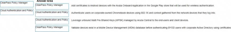 - Validate devices exist in a Mobile Device Management (MDM) database before authenticating BYOD users with corporate Active Directory using certificates A) ClearPass Policy Manager