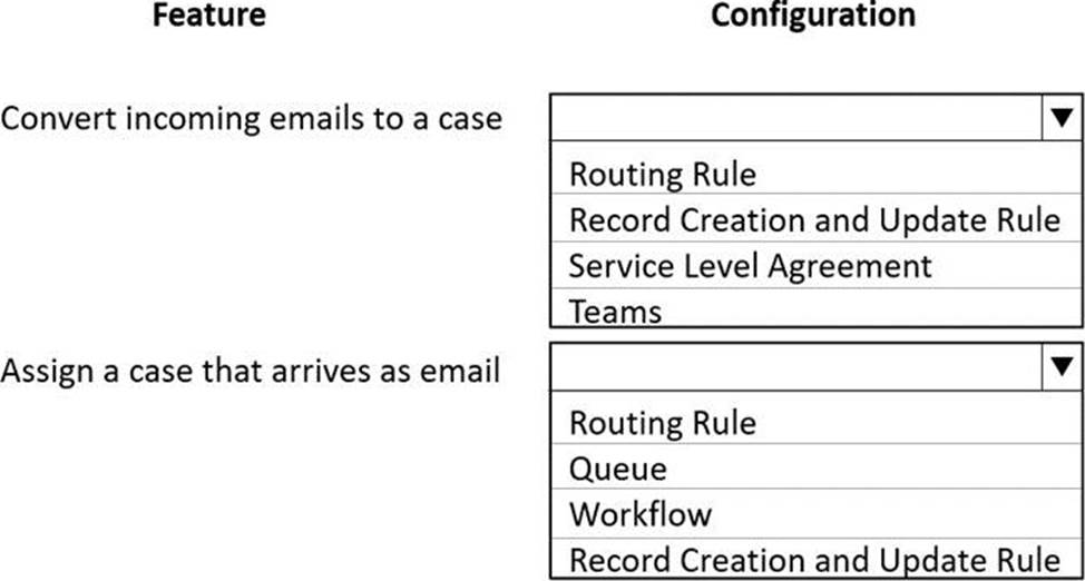 Which configurations should you use? To answer, select the appropriate options in the answer area. NOTE: Each correct selection is worth one point.