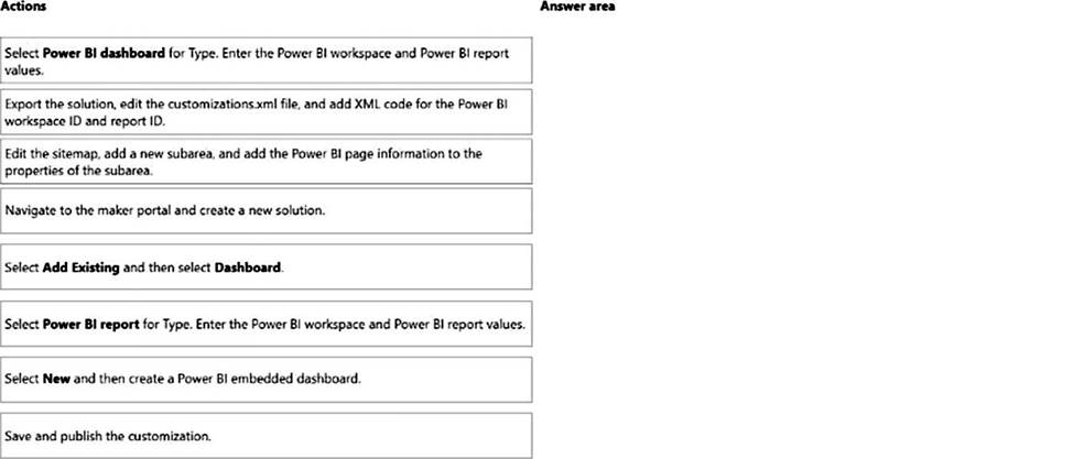 Step 4: Edit the sitemap, add a new subarea, and add the Power BI page information to the properties of the subarea