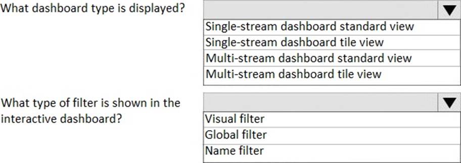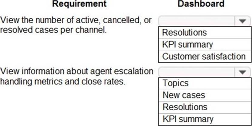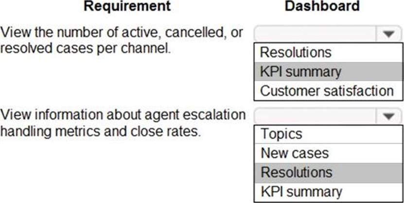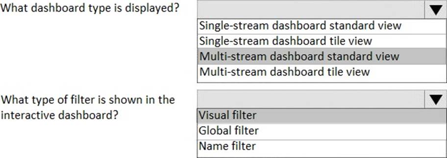 Which dashboard should you recommend? To answer, select the appropriate options in the answer area. NOTE: Each correct selection is worth one point.
