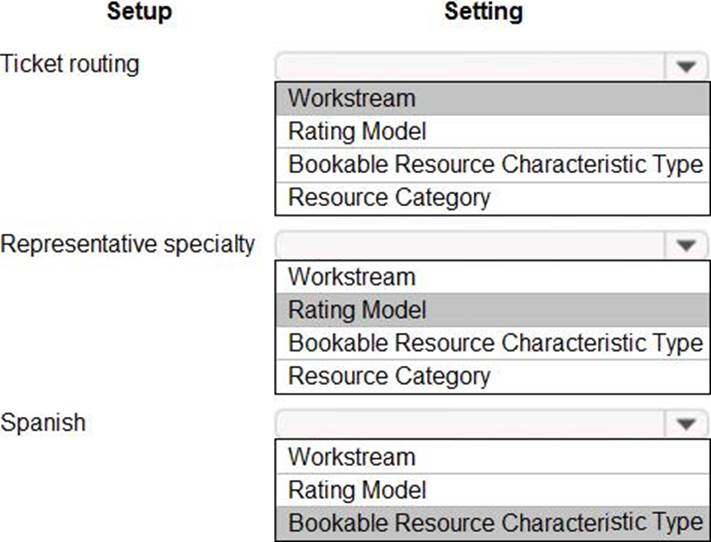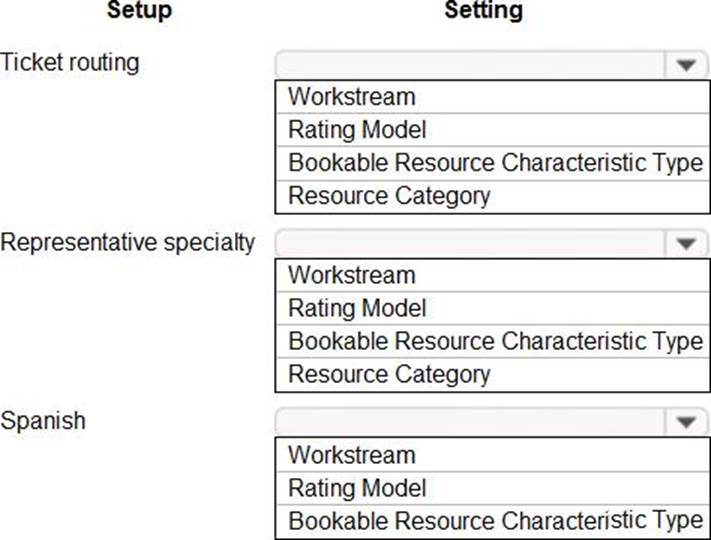 You must configure the system to ensure that you can determine how many support tickets and new orders tickets are received. You must be able to determine which device types have the most tickets opened for issues. Business hours in the system must reflect the hours support staff is scheduled.