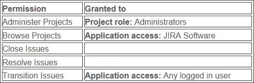 1.View the extract of a Jira Software Scrum project's permission scheme shown.