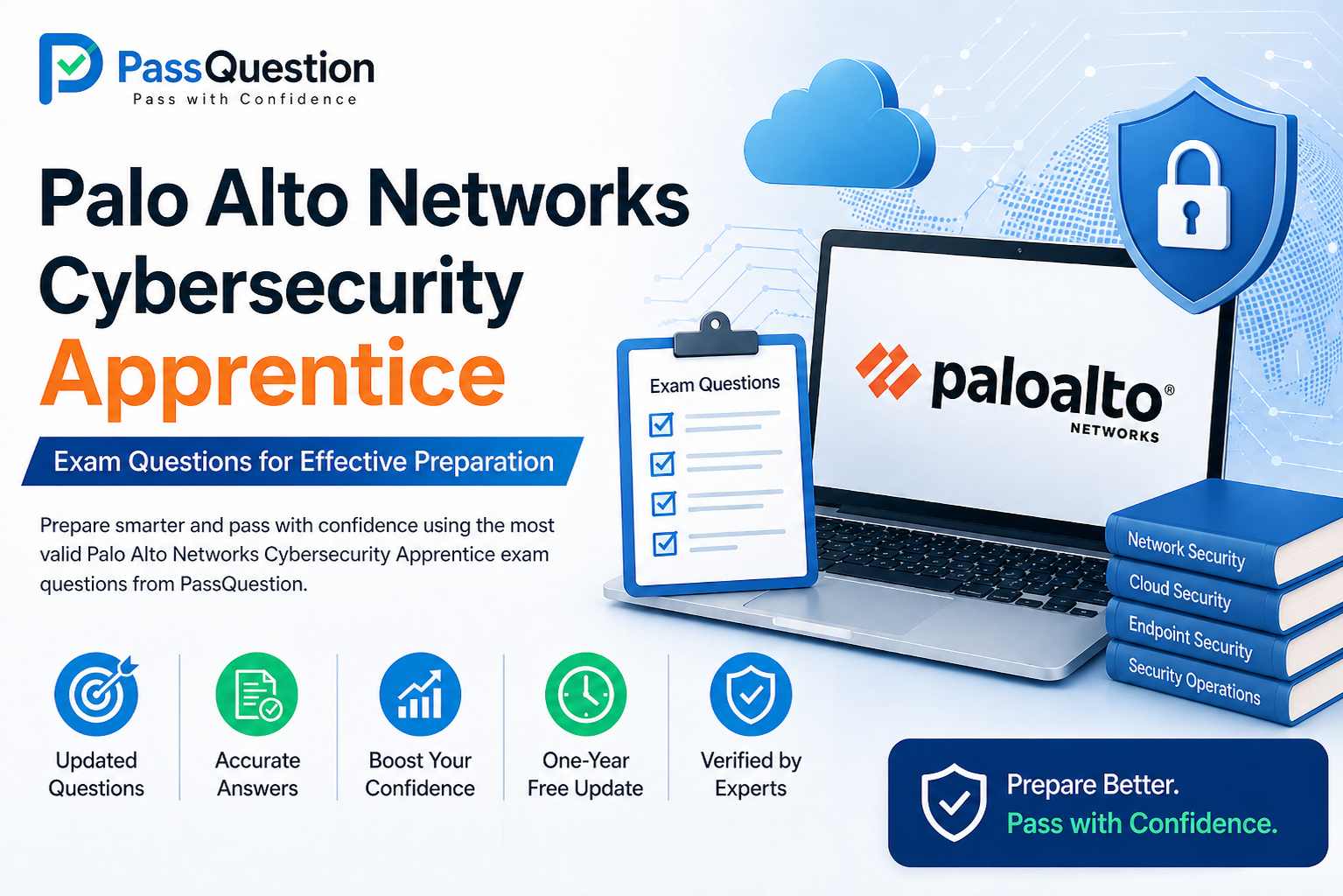 Use the most valid Palo Alto Networks Cybersecurity Apprentice Exam Questions from PassQuestion to test your knowledge after studying each domain. Practice questions help you identify weak areas, understand multiple-choice question patterns, and improve your exam readiness.