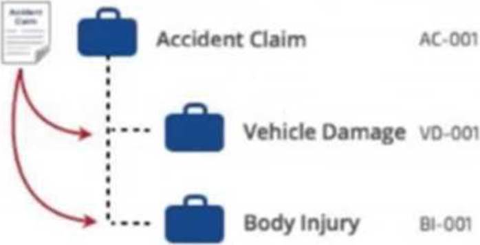 You are configuring an accident claim case with two child cases for an automobile insurance company, as shown in the following figure: