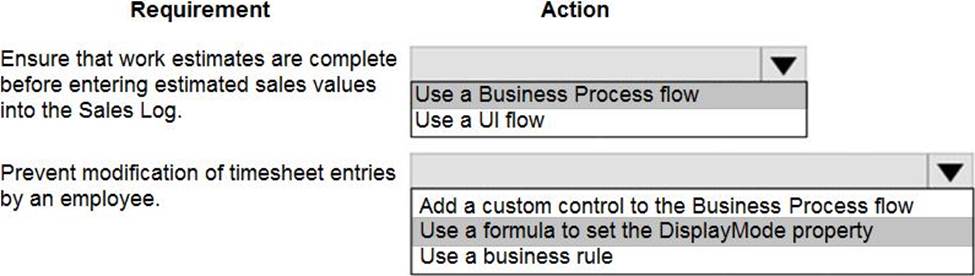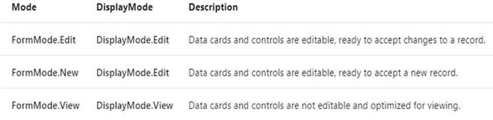 Box 2: Use a formula to set the DisplayMode property DisplayMode - The mode to use for data cards and controls within the form control.