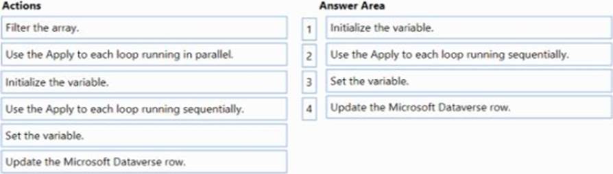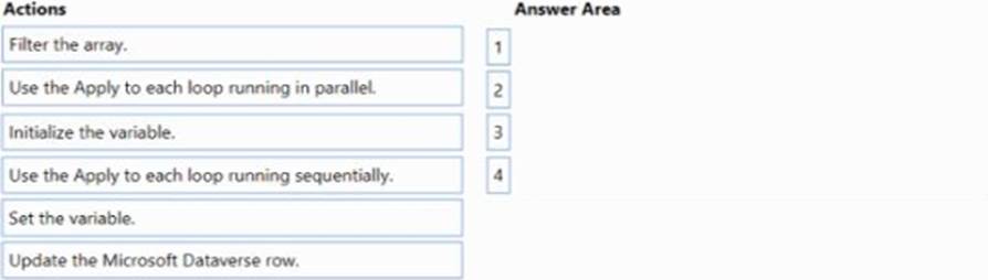 You are creating a Power Automate cloud flow to update a column on each Item in a list of Microsoft Dataverse records. Records are sorted in order of priority.