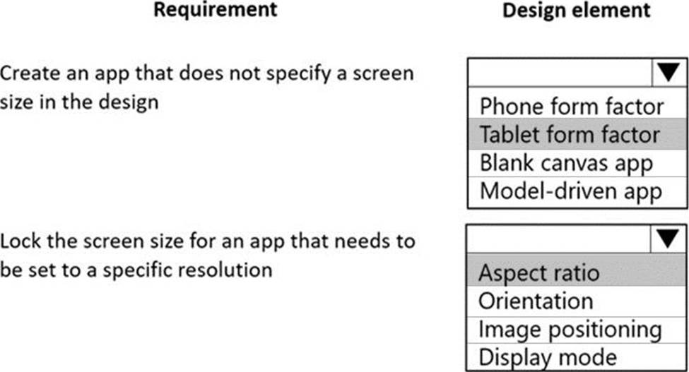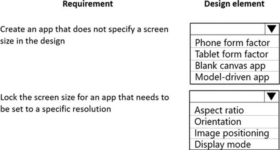 Which design element should you use? To answer, select the appropriate options in the answer area. NOTE: Each correct selection is worth one point.