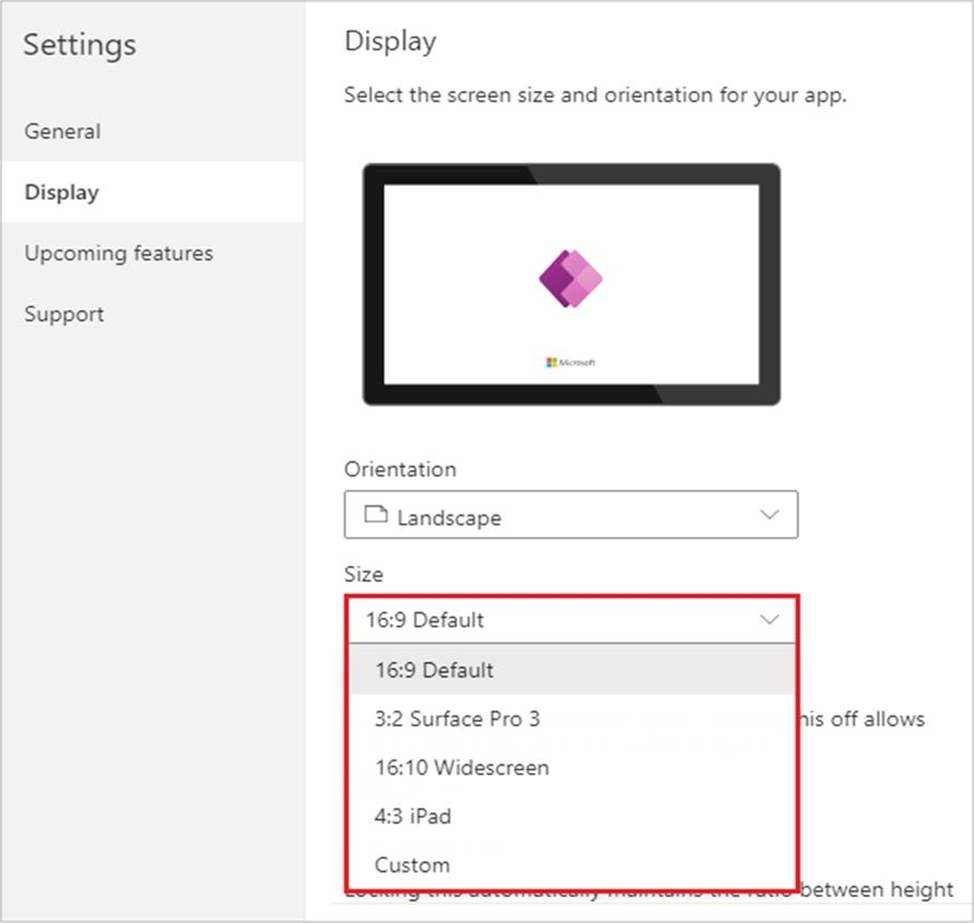 Customize a canvas app by changing its screen size.