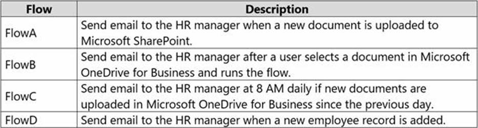 The company requires three cloud flows for the following: