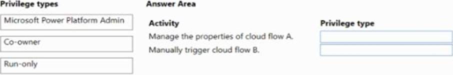A company uses Power Automate. You manage two cloud flows named A and B.