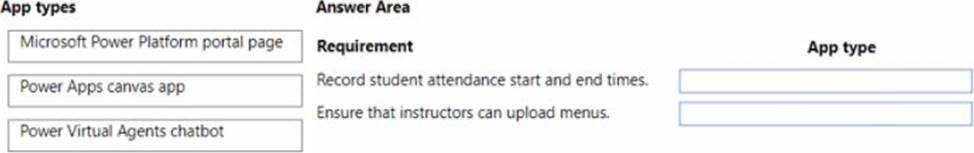 Which app type should you use? To answer, drag the appropriate app types to the correct requirements. Each app type may be used once, more than once, or not at all. You may need to drag the split bar between panes or scroll to view content. NOTE: Each correct selection is worth one point.