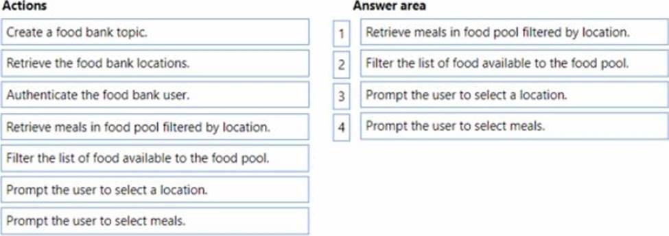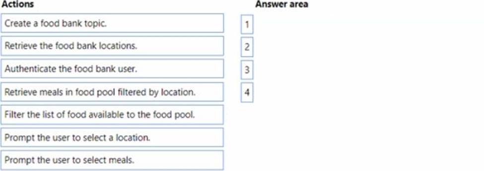 Which four actions should you perform in sequence? To answer, move the appropriate actions from the list of actions to the answer area and arrange them in the correct order.