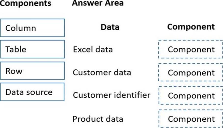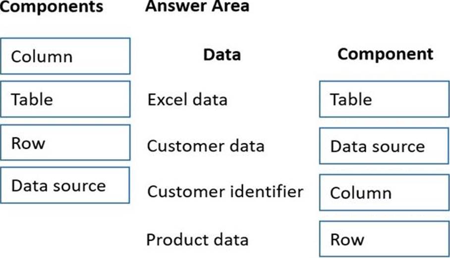 Which component should you use? To answer, drag the appropriate components to the correct data type. Each component may be used once, more than once, or not at all. You may need to drag the split bar between panes or scroll to view content. NOTE: Each correct selection is worth one point.