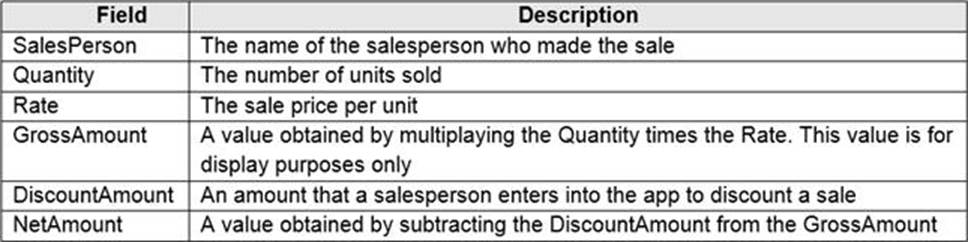 You create a new entity that includes a field named TotalSales. The field is used to capture the aggregated sales for each salesperson.