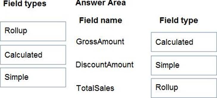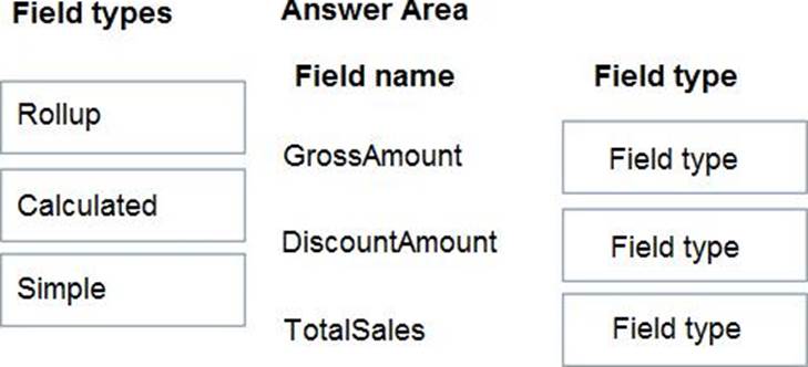 Which field types should you use? To answer, drag the appropriate field types to the correct field names. Each field type may be used once, more than once, or not at all. You may need to drag the split bar between panes or scroll to view content. NOTE: Each correct selection is worth one point.