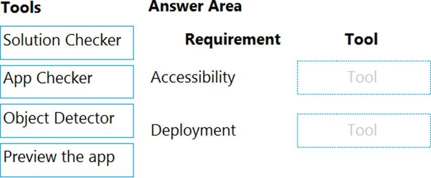 Which tools should you use? To answer, select the appropriate tool in the answer area. NOTE: Each correct selection is worth one point.