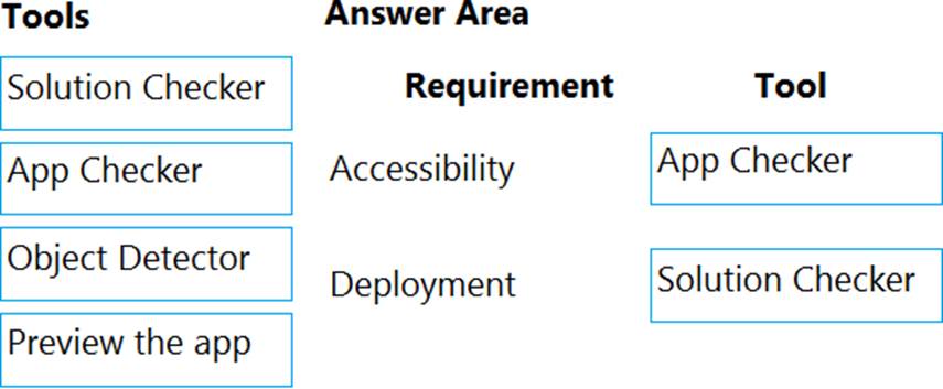 Scenario: Before deploying the app to production, you must ensure that the app conforms to Microsoft accessibility and performance guidelines.