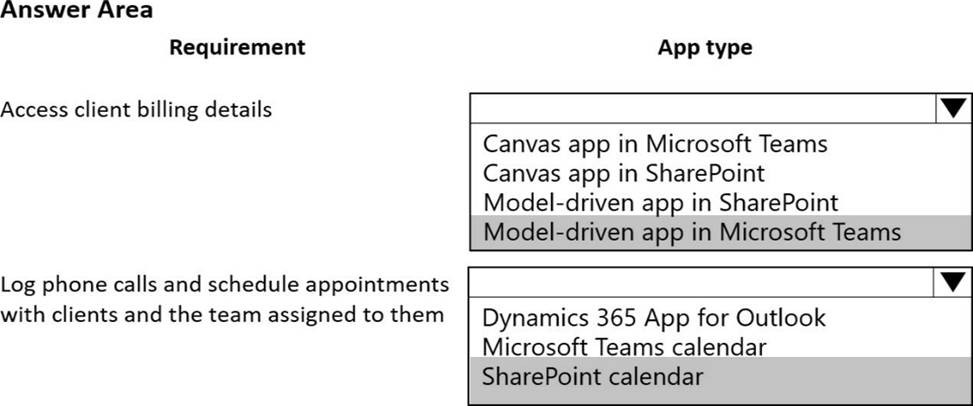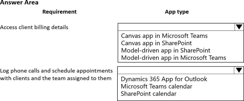 Which type of app should you create? To answer, select the appropriate options in the answer area. NOTE: Each correct selection is worth one point.
