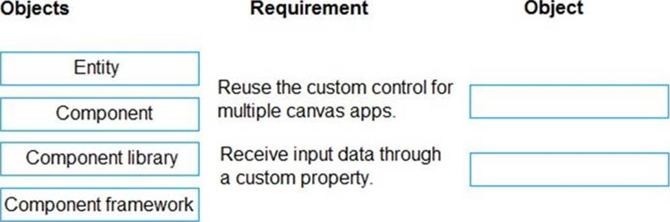 Which objects should you use? To answer, drag the appropriate objects to the correct requirements. Each object may be used once, more than once, or not at all. You may need to drag the split bar between panes or scroll to view content. NOTE: Each correct selection is worth one point.