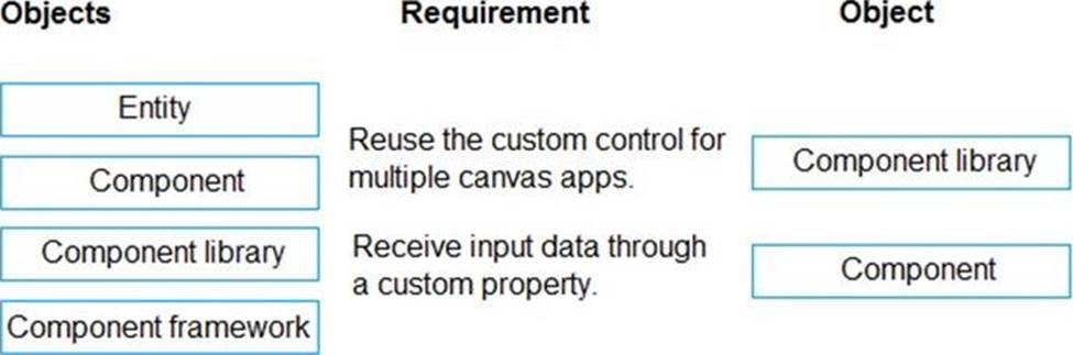 Which component should you use? To answer, select the appropriate options in the answer area. NOTE: Each correct selection is worth one point.