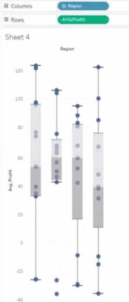 1.You have the following box plot that shows the distribution of average profits made in every state by region.