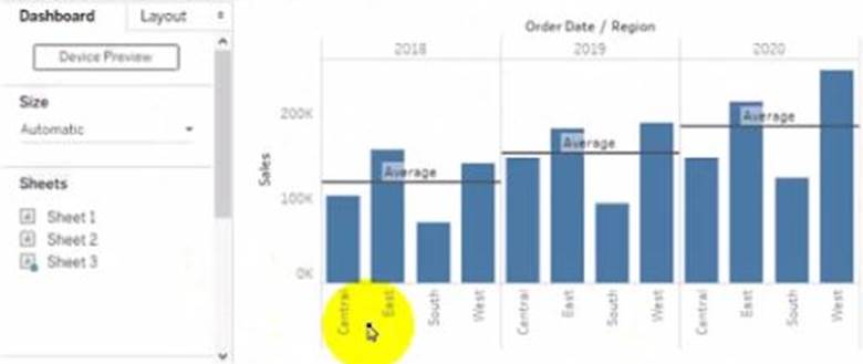 To show the corresponding region when users hover their mouse over any of the bars, you need to drag Region to Tooltip on the Marks card. This will add Region as a field in the tooltip text that appears when users hover over a mark. You can also customize the tooltip text by editing it in the Tooltip dialog box.