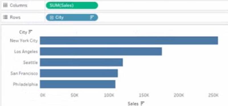 You have the following chart that shows the number of sales made in different cities.