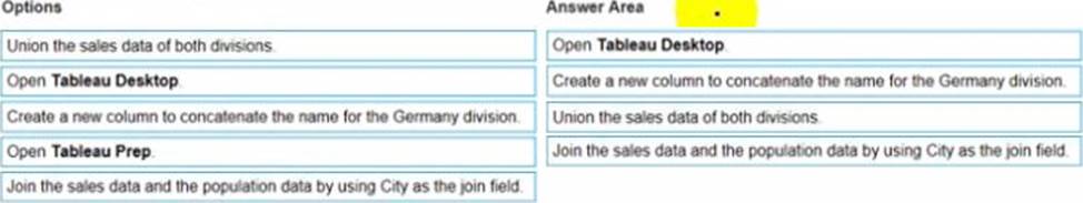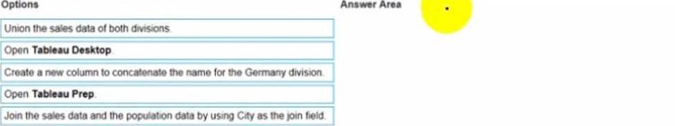 Create a new column to concatenate the name for the Germany division Join the sales data and the population data by using Country as the join field