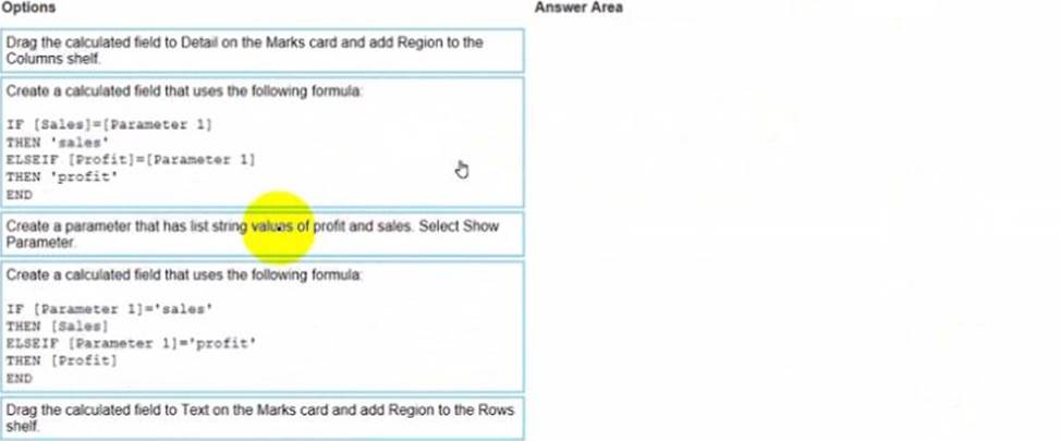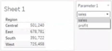 The table must show either profit or sales based on the selection from the Parameter 1 menu.
